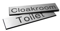 51498: Engraved Sign with adhesive backing - 35x70mm dia Black text on aluminium effect